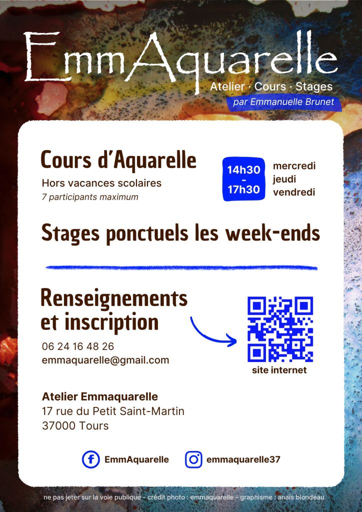 « Un dimanche d’aquarelle », dimanche 10 mai (10h-13h et 14h-17h), à l’atelier EmmAquarelle, à Tours.