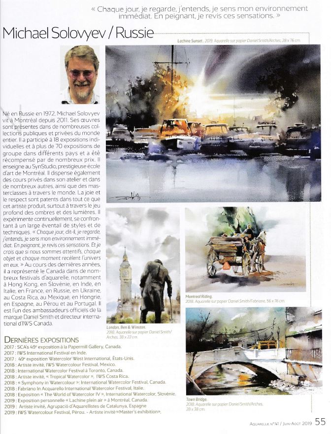 En 2024, Michael Solovyev a animé trois jours, dans mon atelier, 17 rue du Petit Saint-Martin, avec trois thèmes différents. Ces stages s’adressaient à des aquarellistes confirmés.