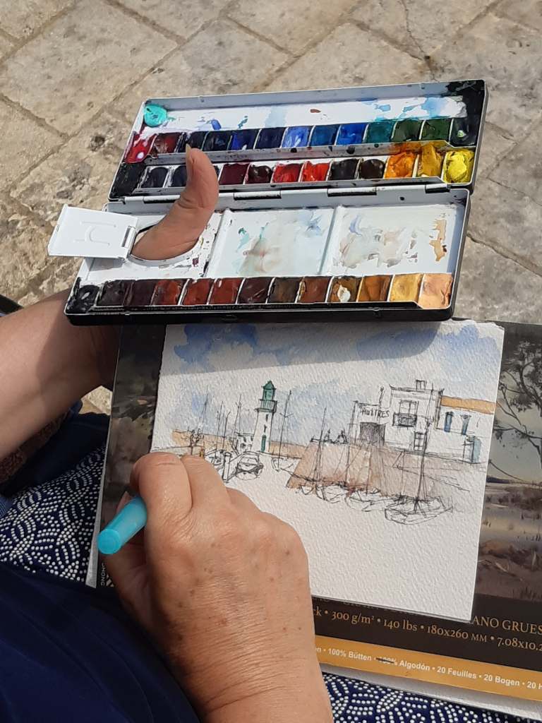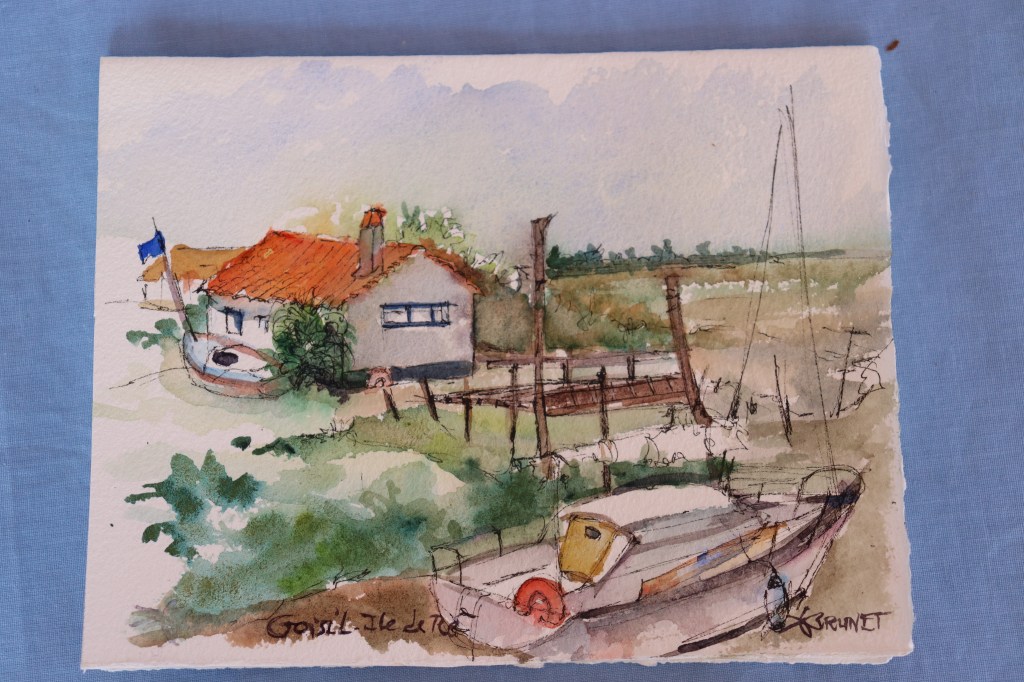 L’ aquarelle peut rejoindre un carnet ou servir de carte postale.