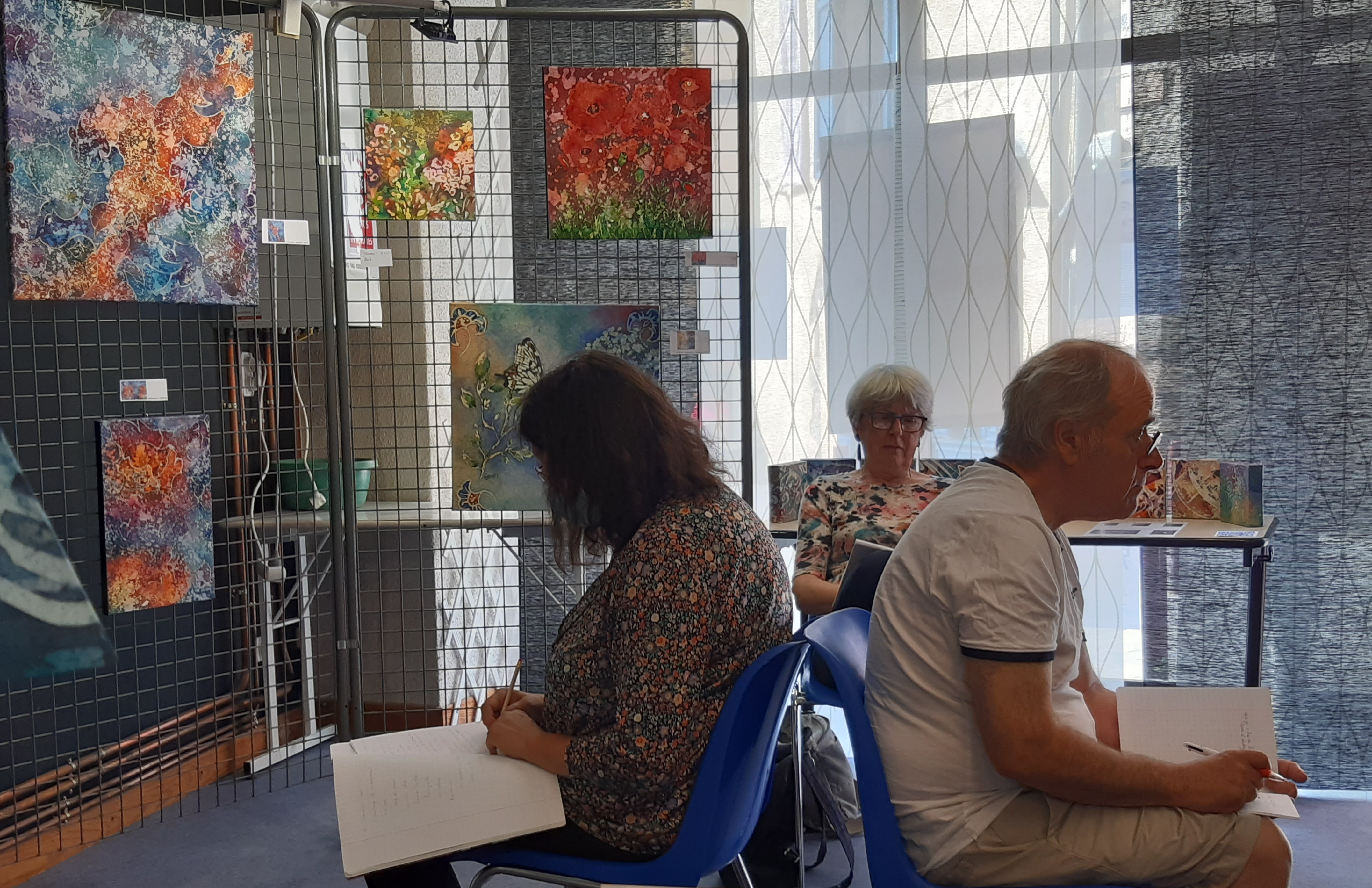 Leurs ateliers d’écriture s’associent aussi avec des événements d’art, comme la Biennale Internationale d’aquarelle de Brioude (Haute-Loire). Voici deux textes inspirés de mes batiks d’aquarelle :