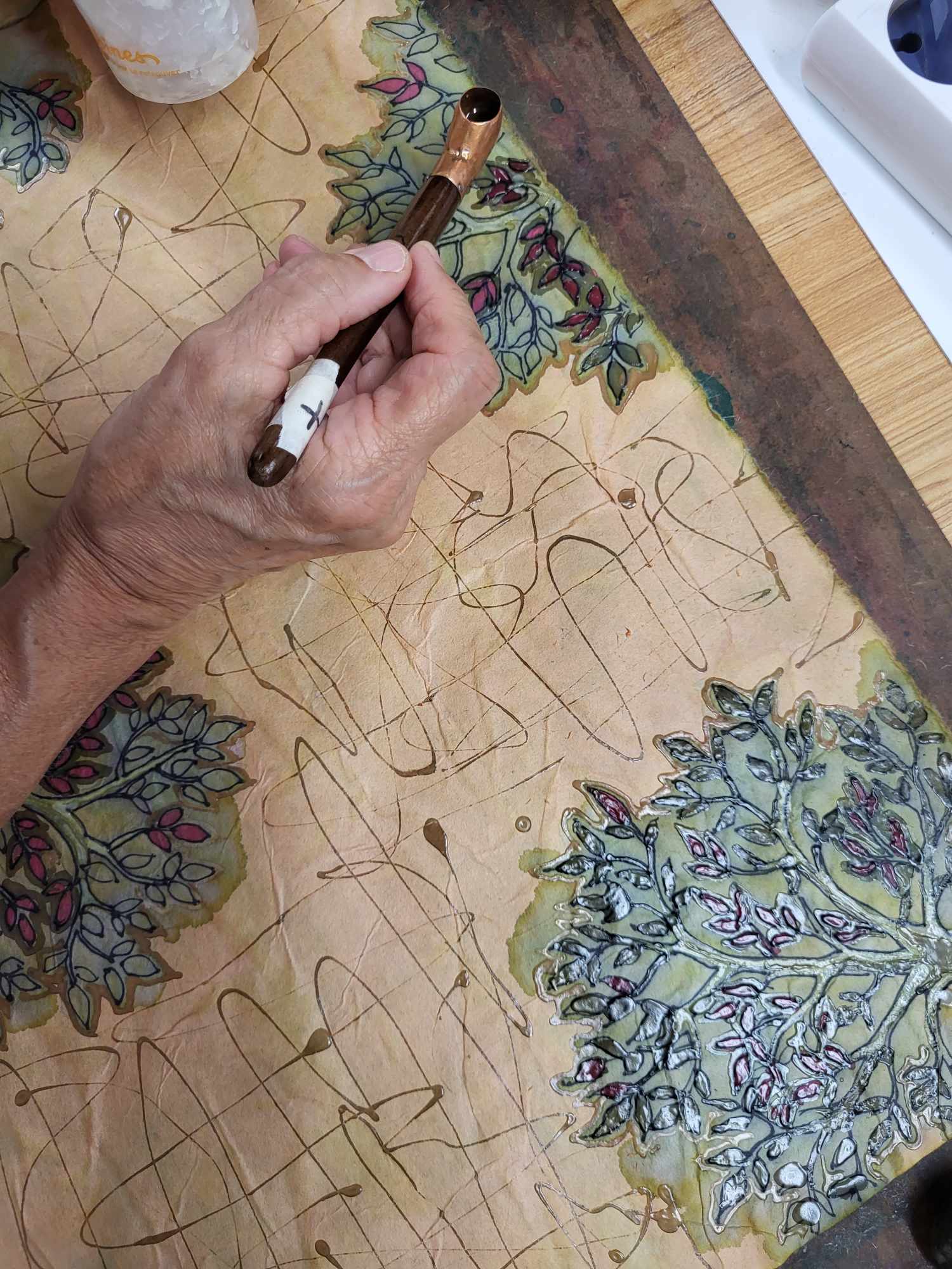 Un bonheur de dessiner sur papier japonais, et de tracer au djantig les contours de son motif.