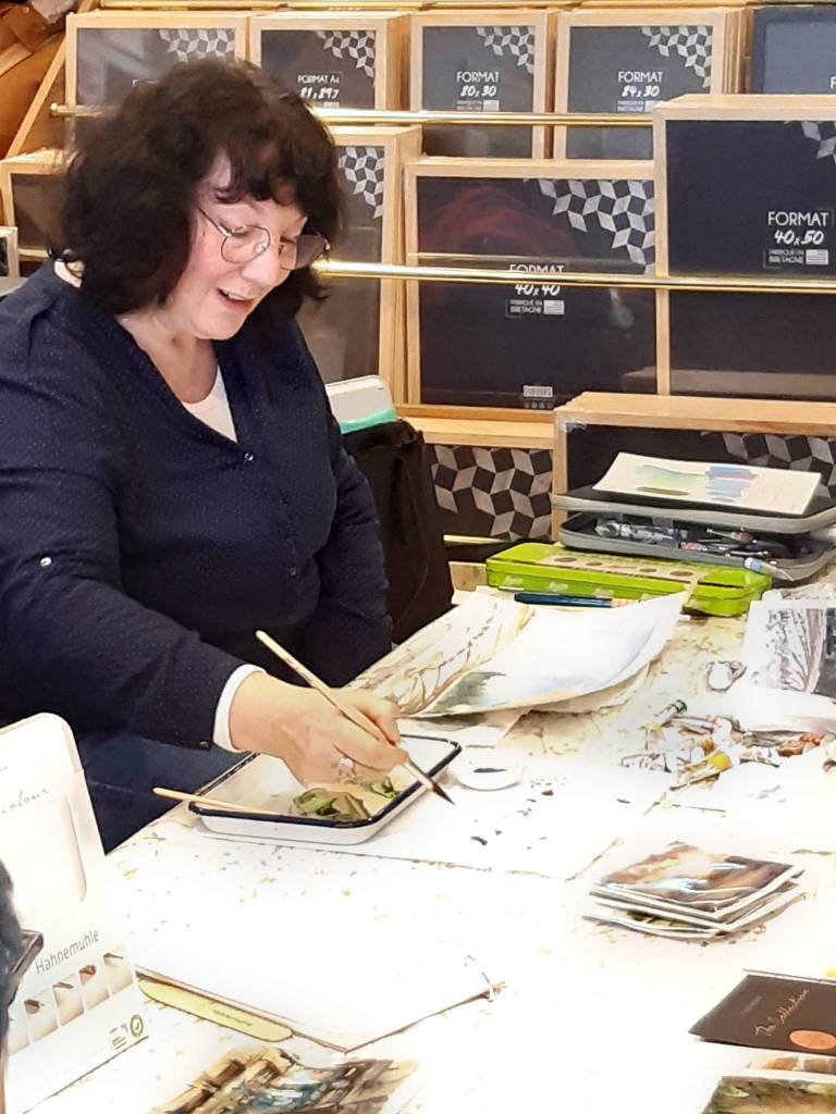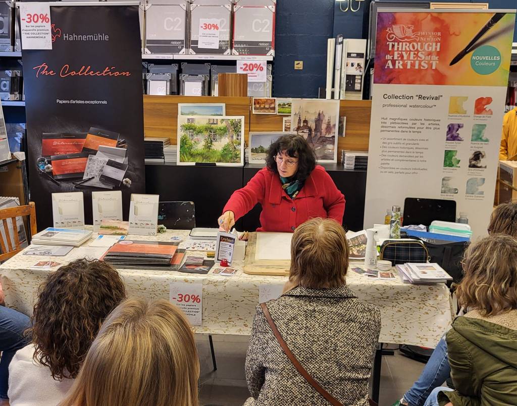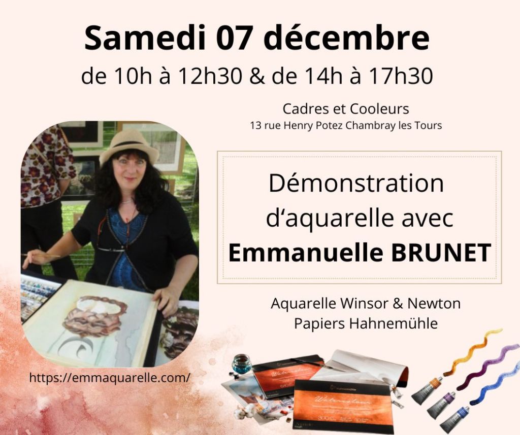 Samedi 7 décembre 2024, à l’invitation de Cadres & Cooleurs, j’ai fait trois démonstrations d’aquarelle, avec les pigments Winsor & Newton et les papiers Hahnemülhe.