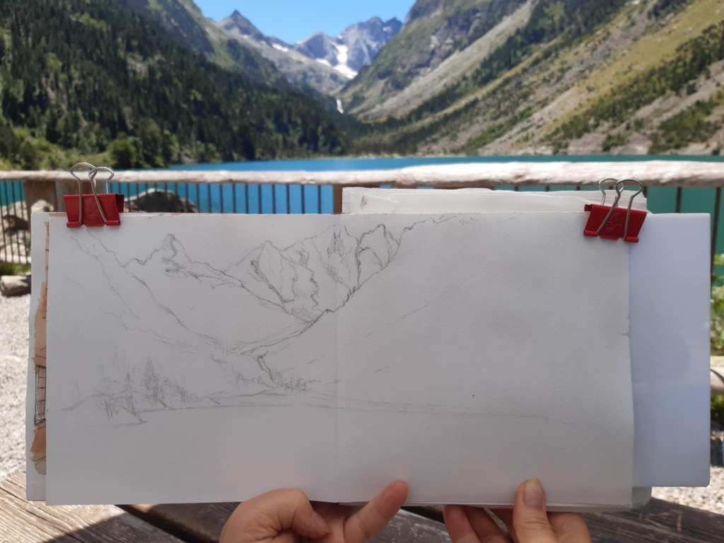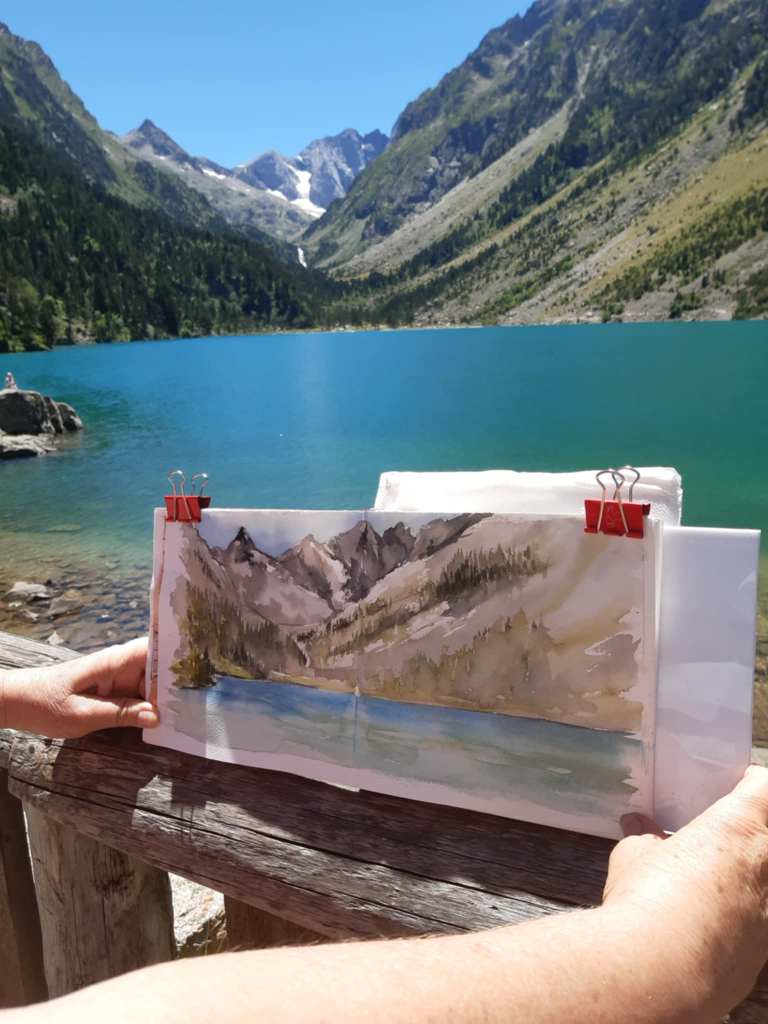 Deux semaines dans les Hautes-Pyrénées m’ont permis d’exposer à Sainte-Marie-de-Campan et de peindre sur le vif, auprès de la nature et face à de superbes massifs montagneux.