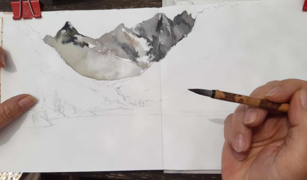 Le dessin a été réalisé sur place et la mise en couleur, ensuite :