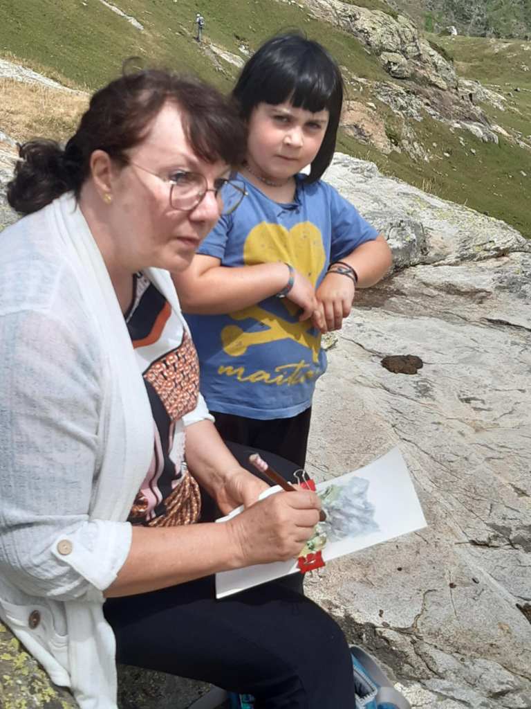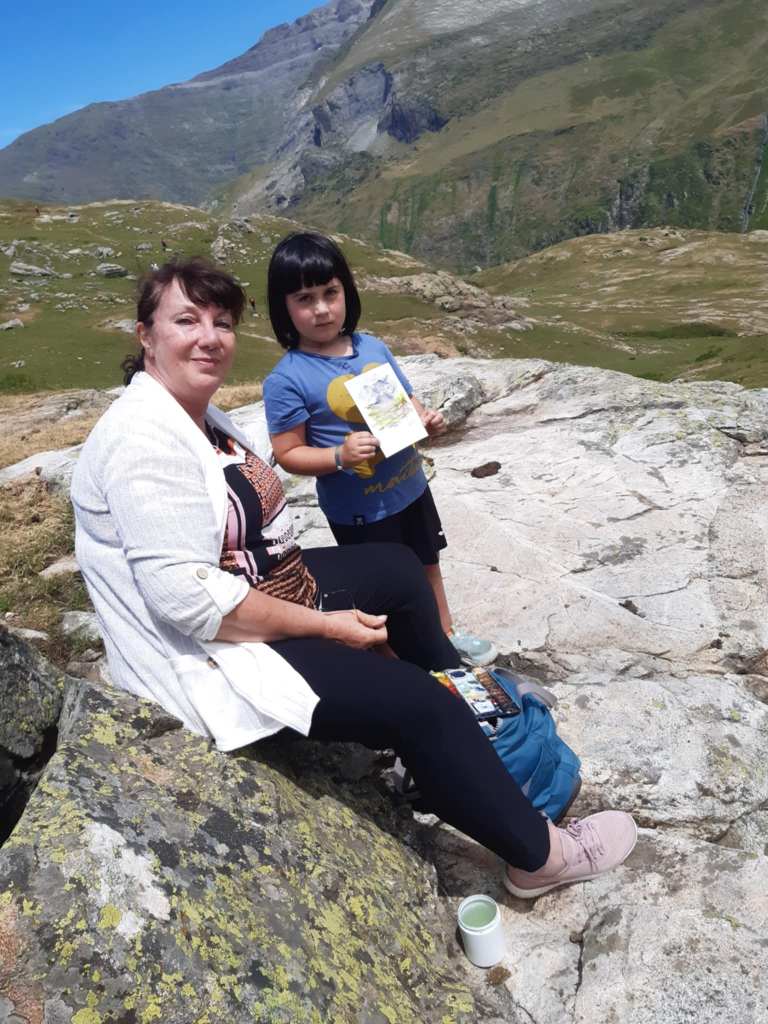 Avec une jeune passionnée basque, Lour, à qui j’ai offert sa première aquarelle :