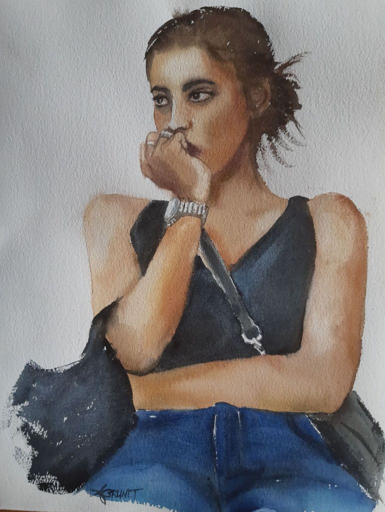 « La longue attente », #watercolor, #aquarelle, 28×38 cm.